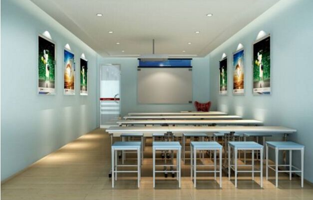 培训机构室内装修设计主要包括前台、教室和办公室,前台作为培训机构的第一印象,意义重大,被称为机构的面孔。要有统一的整体风格、色彩,要有鲜明的文化形象墙,突出机构LOGO和理念。能给家长一种规范、舒心的感觉,让他们放心的把孩子托付给机构。充分利用前台空间打造家长休息区域,突出机构的人文关怀,赢得家长们的进一步认可。